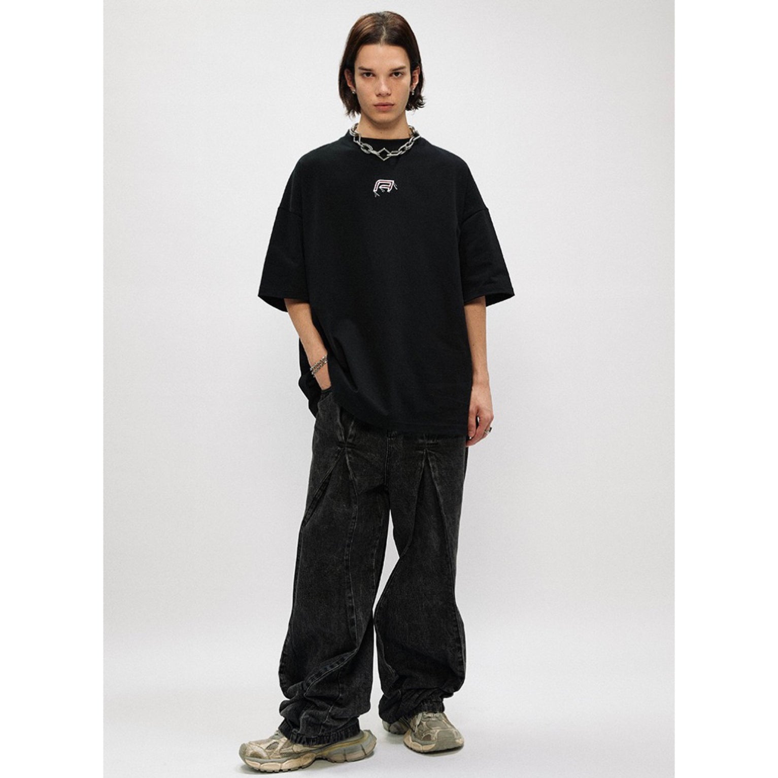 Vancarhell Embroidery Oversized Washed T-Shirt