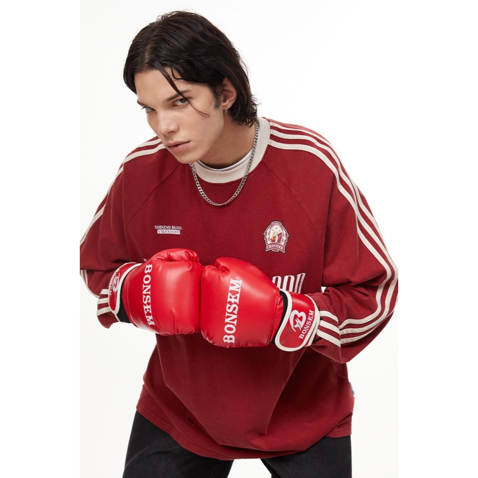 Male model is 180cm and 70kg wearing size Extra Large.