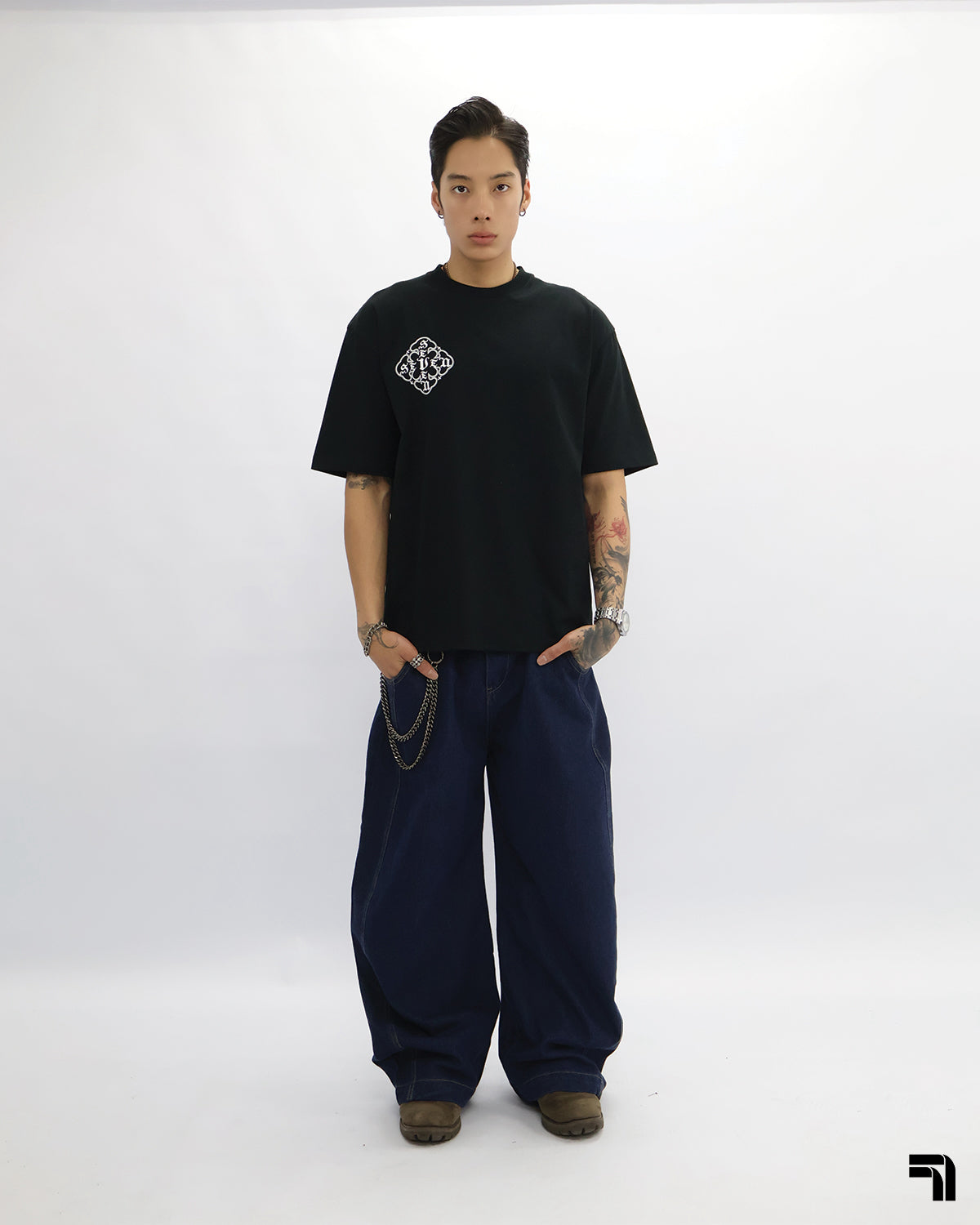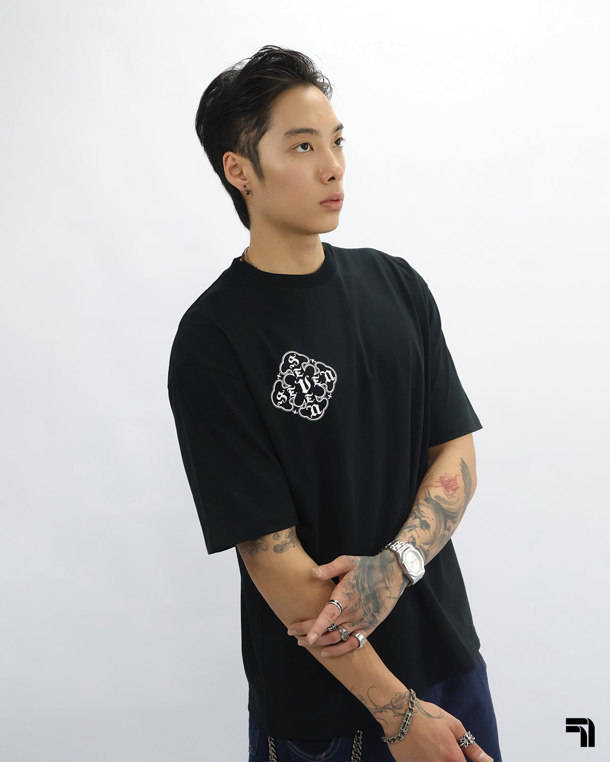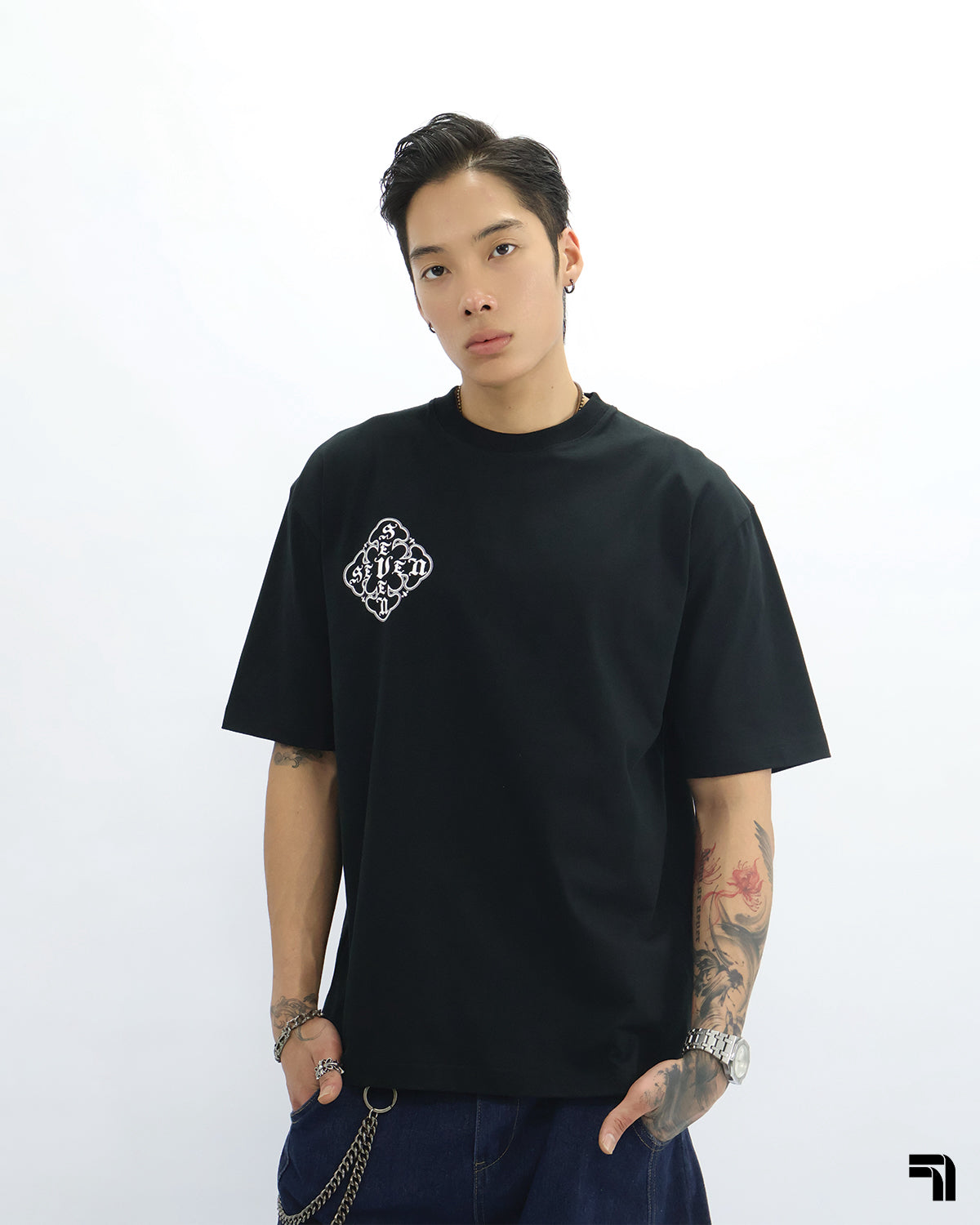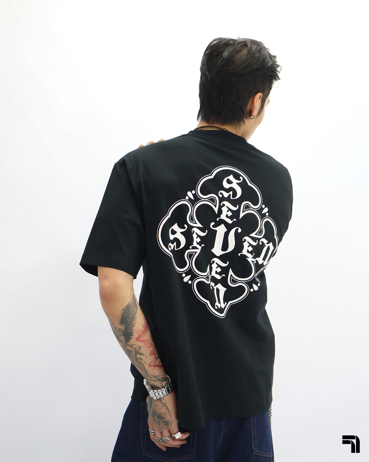 Double 7 Cross Emblem Tee (Black)