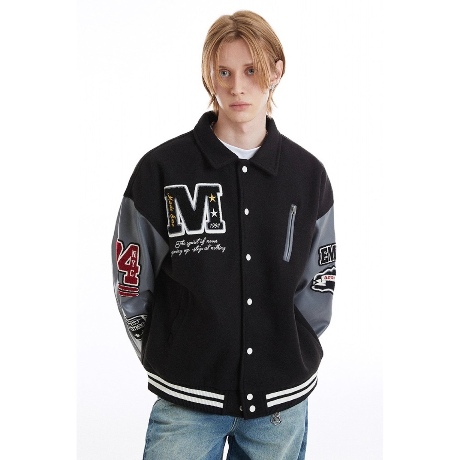 Inflation Embroidered Varsity Baseball Jacket