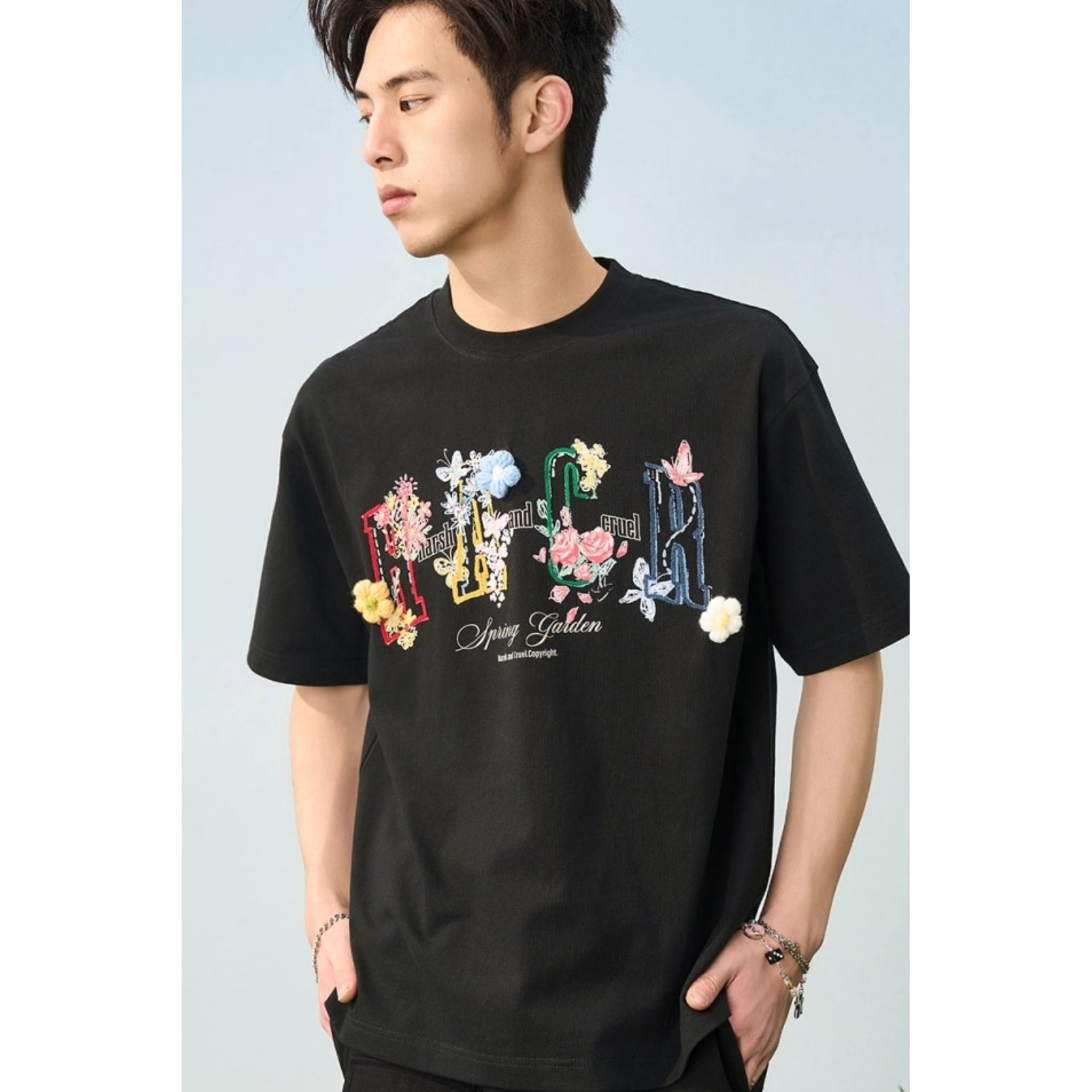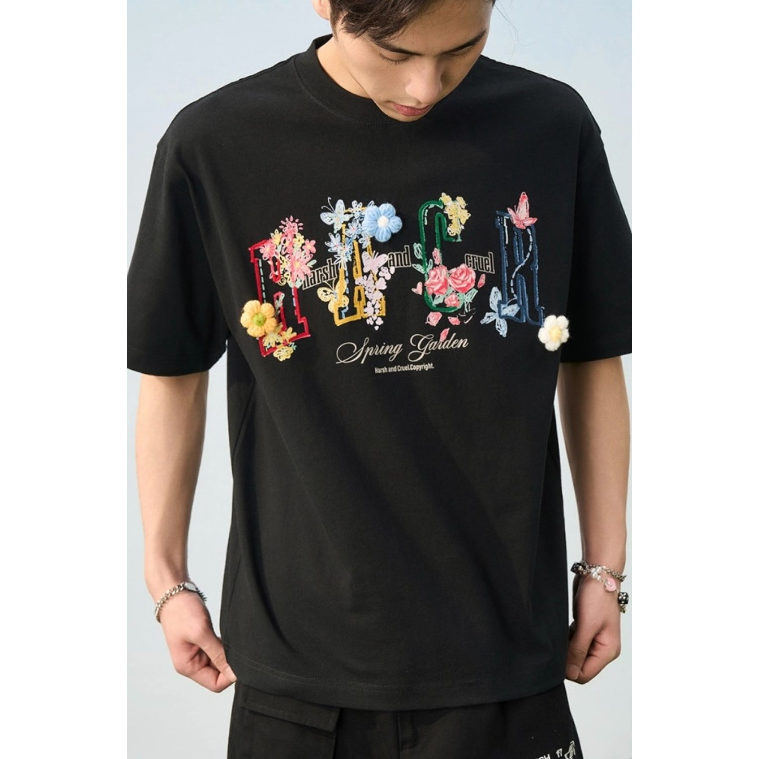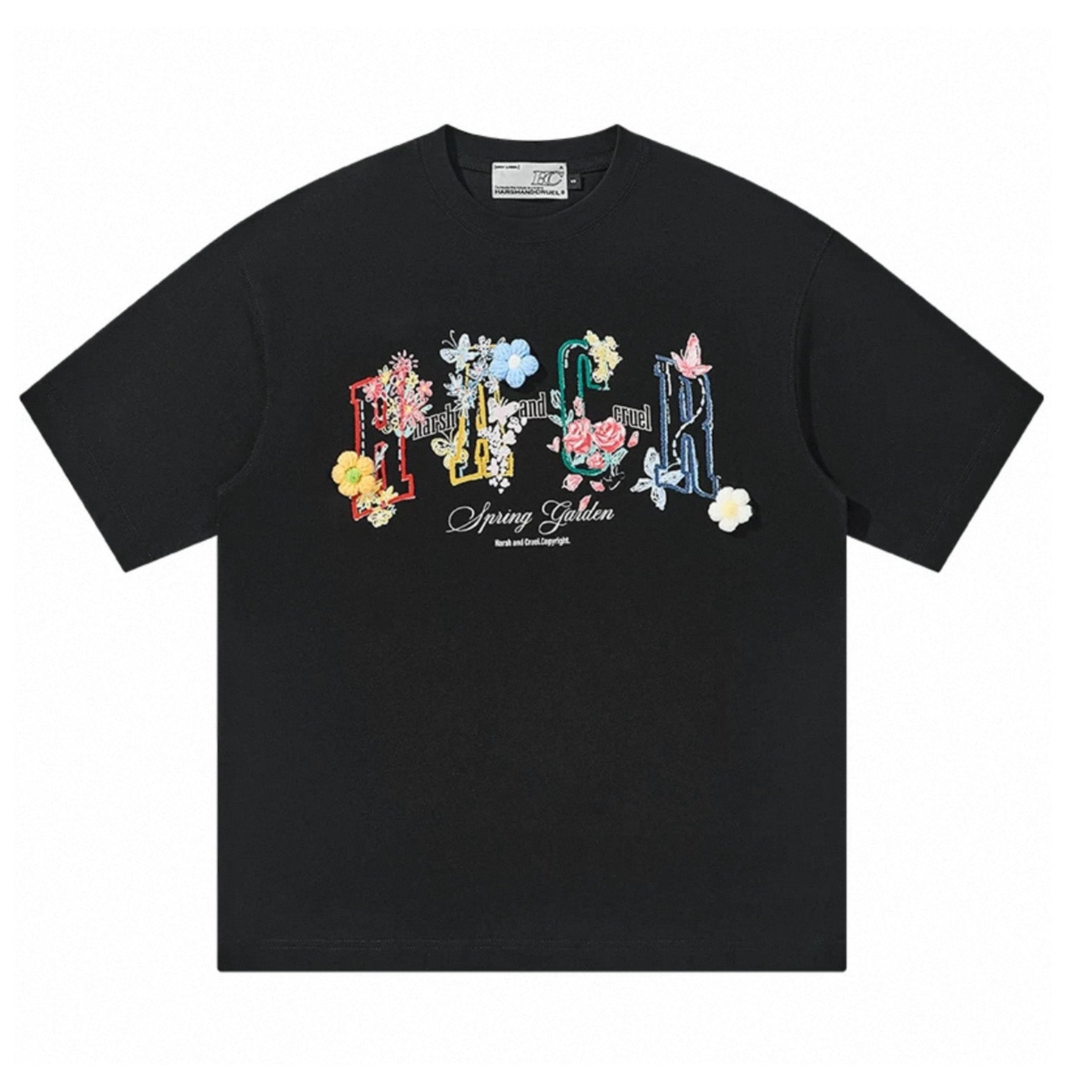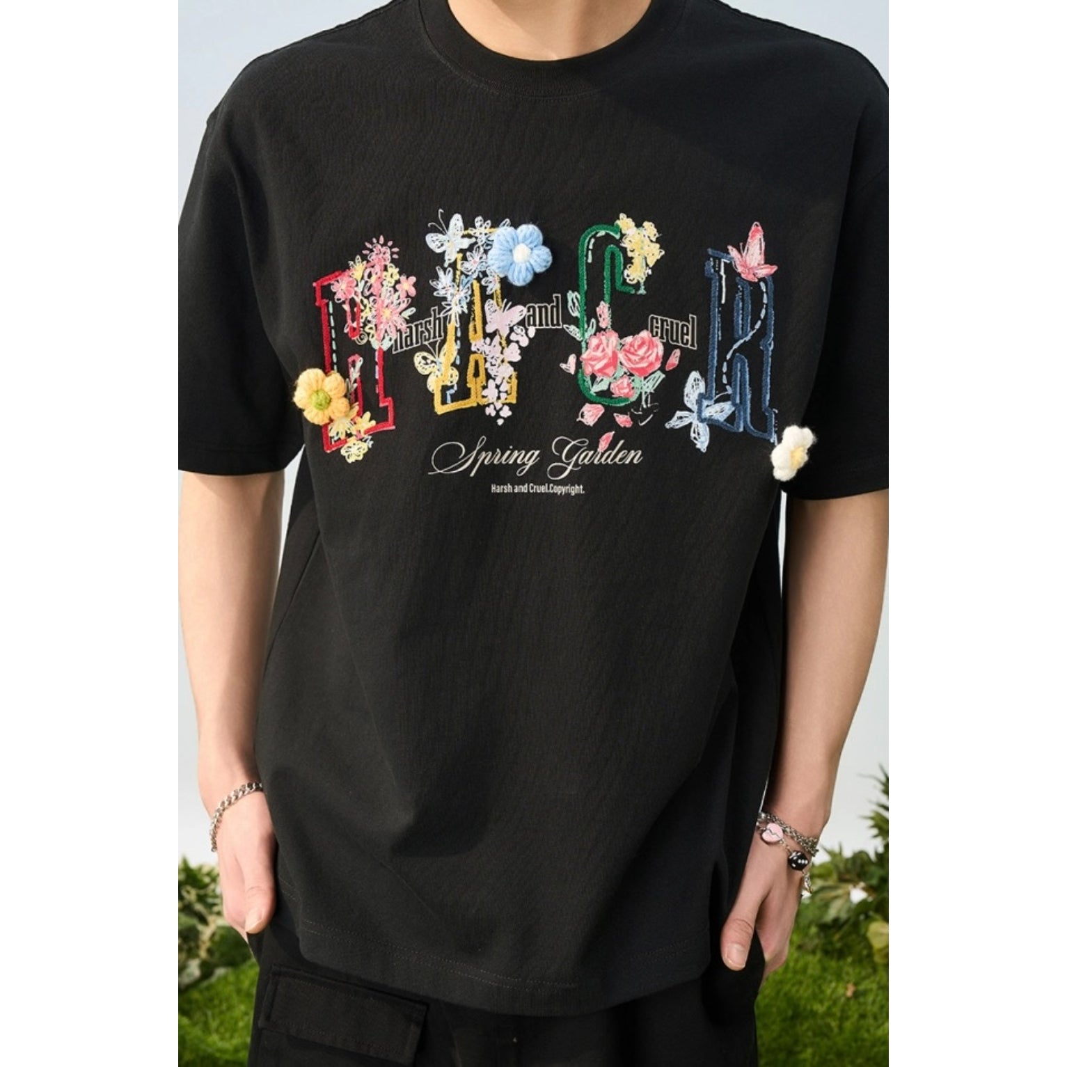 Harsh & Cruel Flocked Floral Graphic Oversized T-Shirt