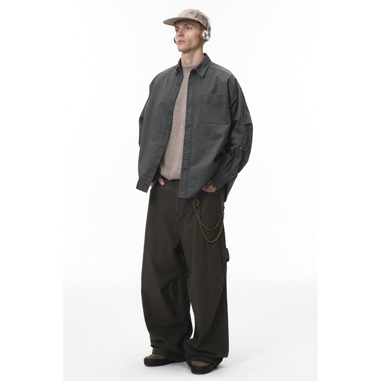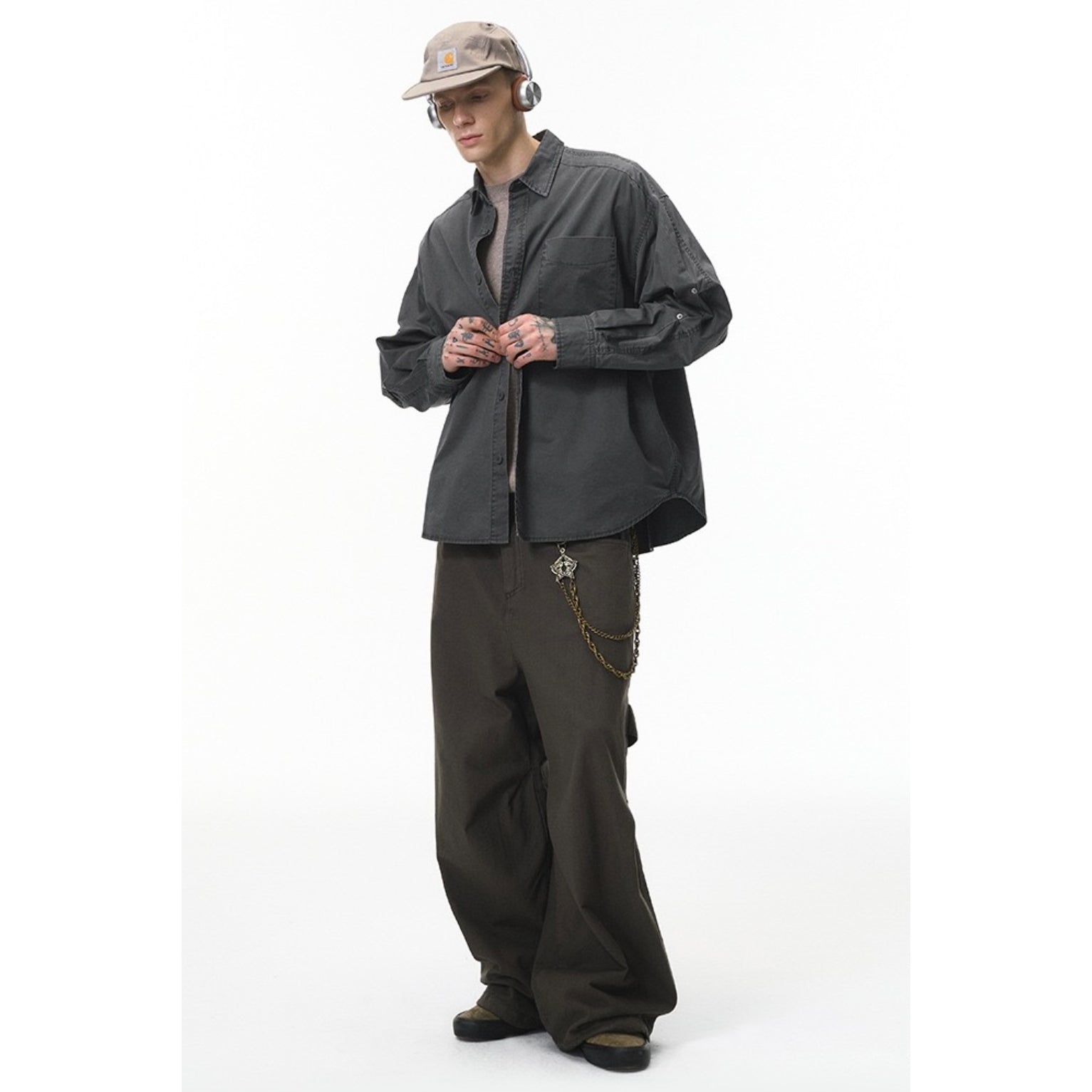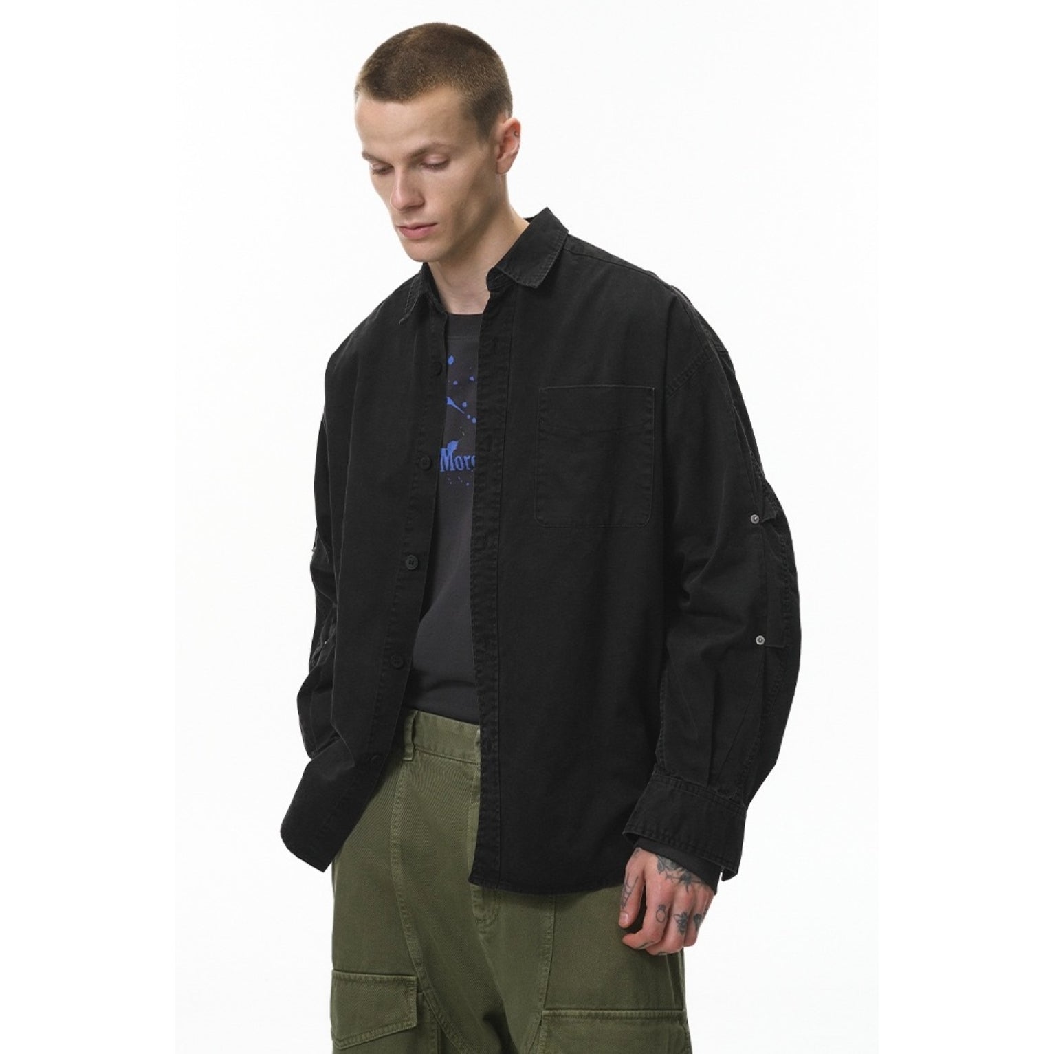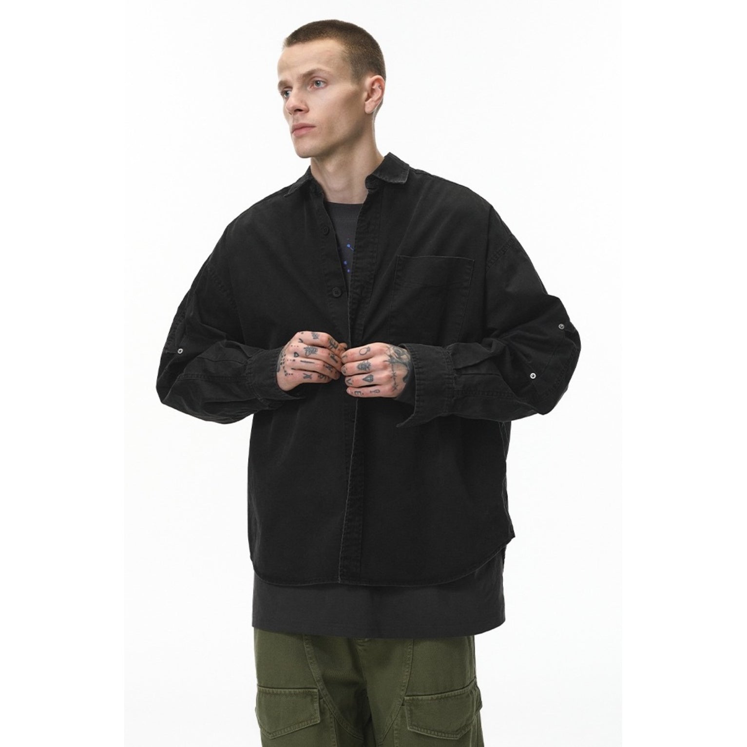 Inflation Long-Sleeve Retro Washed Workwear Shirt