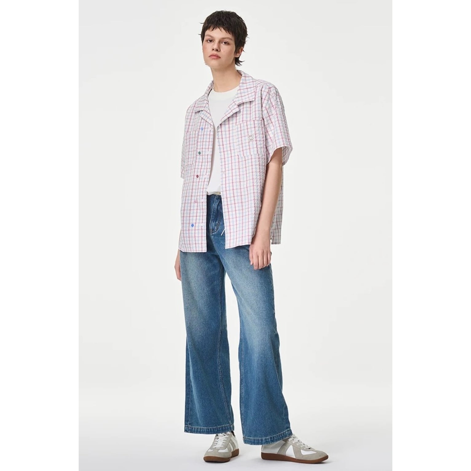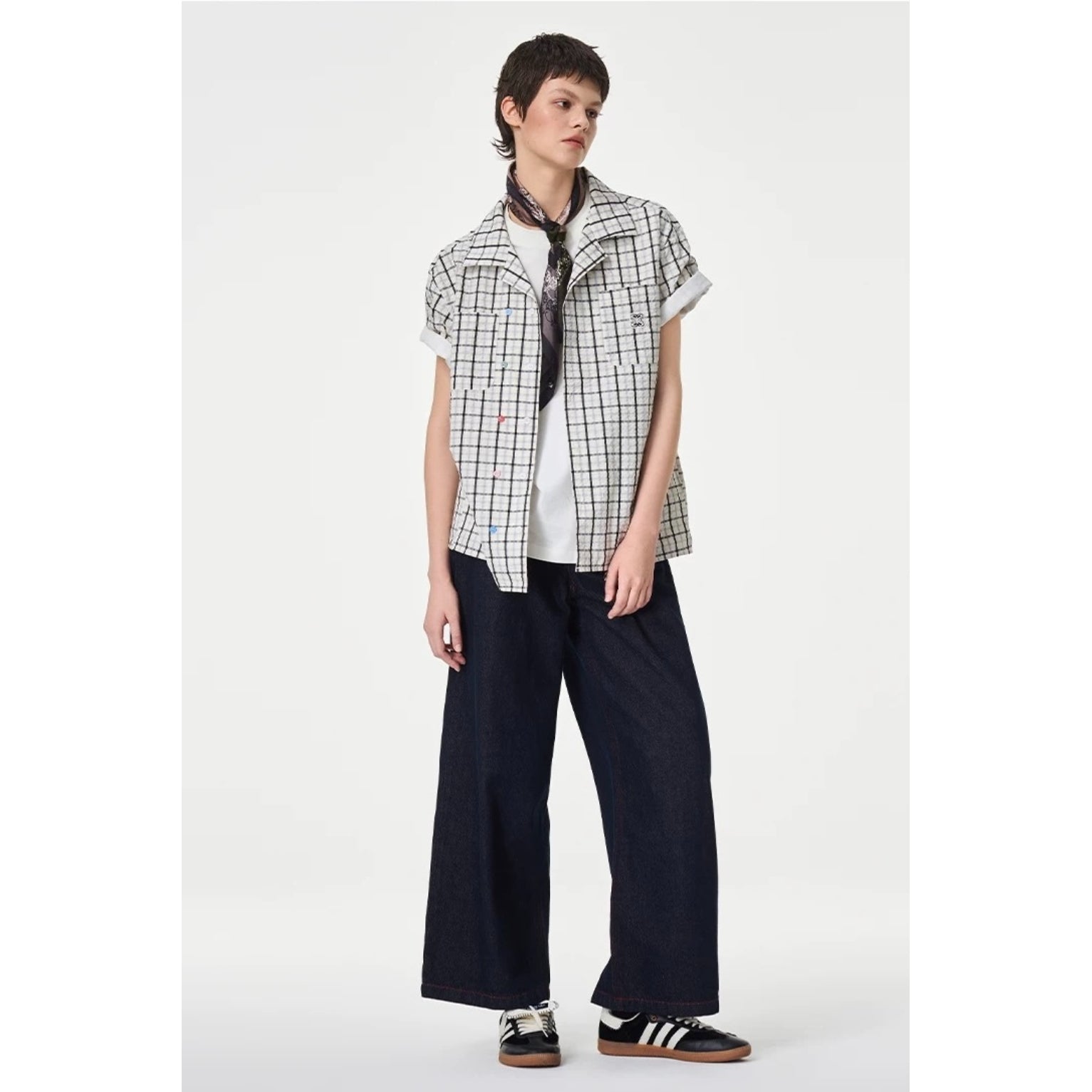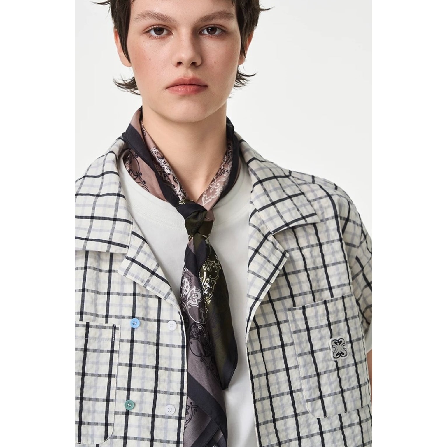 Iconslab Contrast Plaid Checkerboard Cuban Shirt