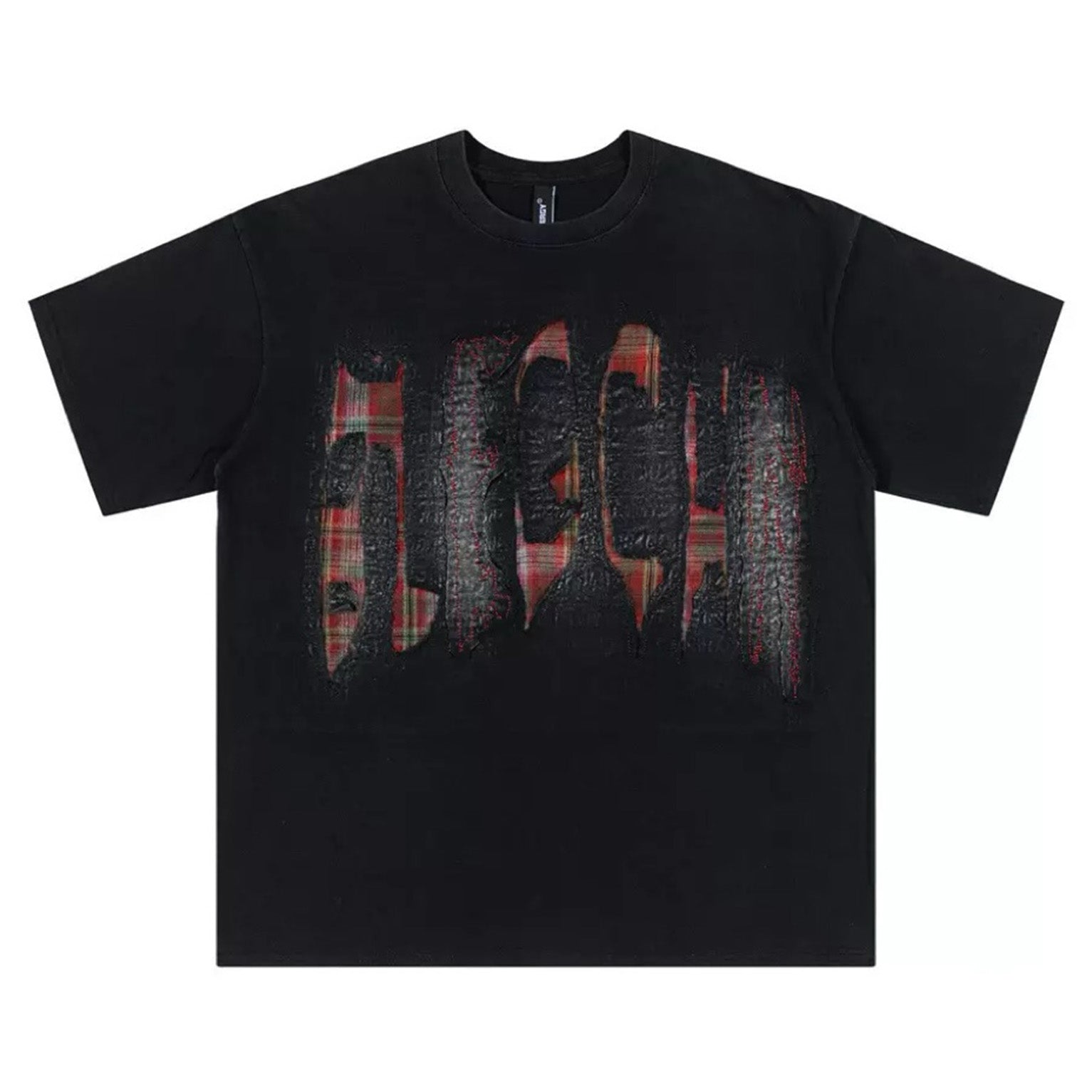 Black Energy Plaid Patchwork Graphic T-Shirt