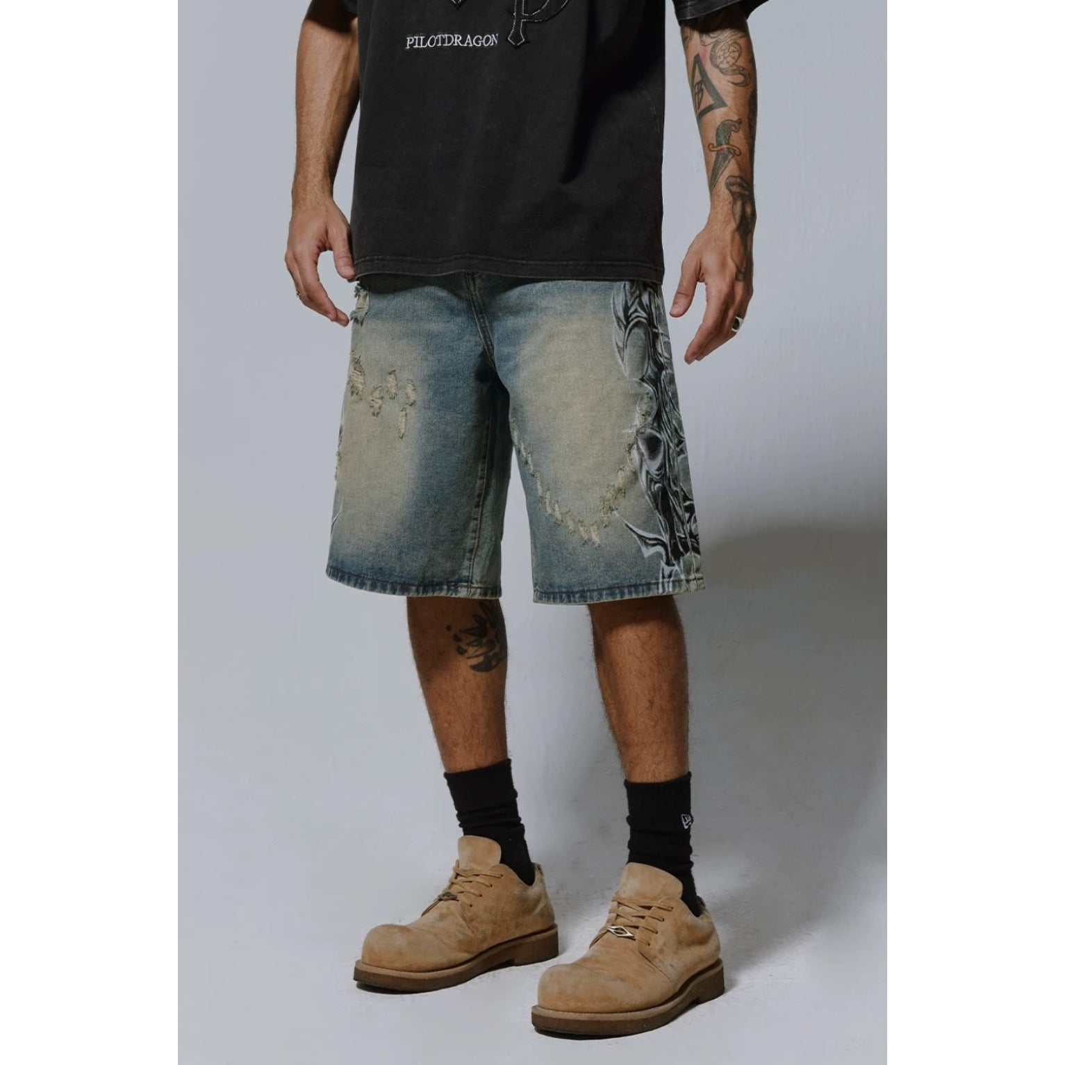 Pilot Dragon Washed Inferno Fade Denim Shorts (Preorder)