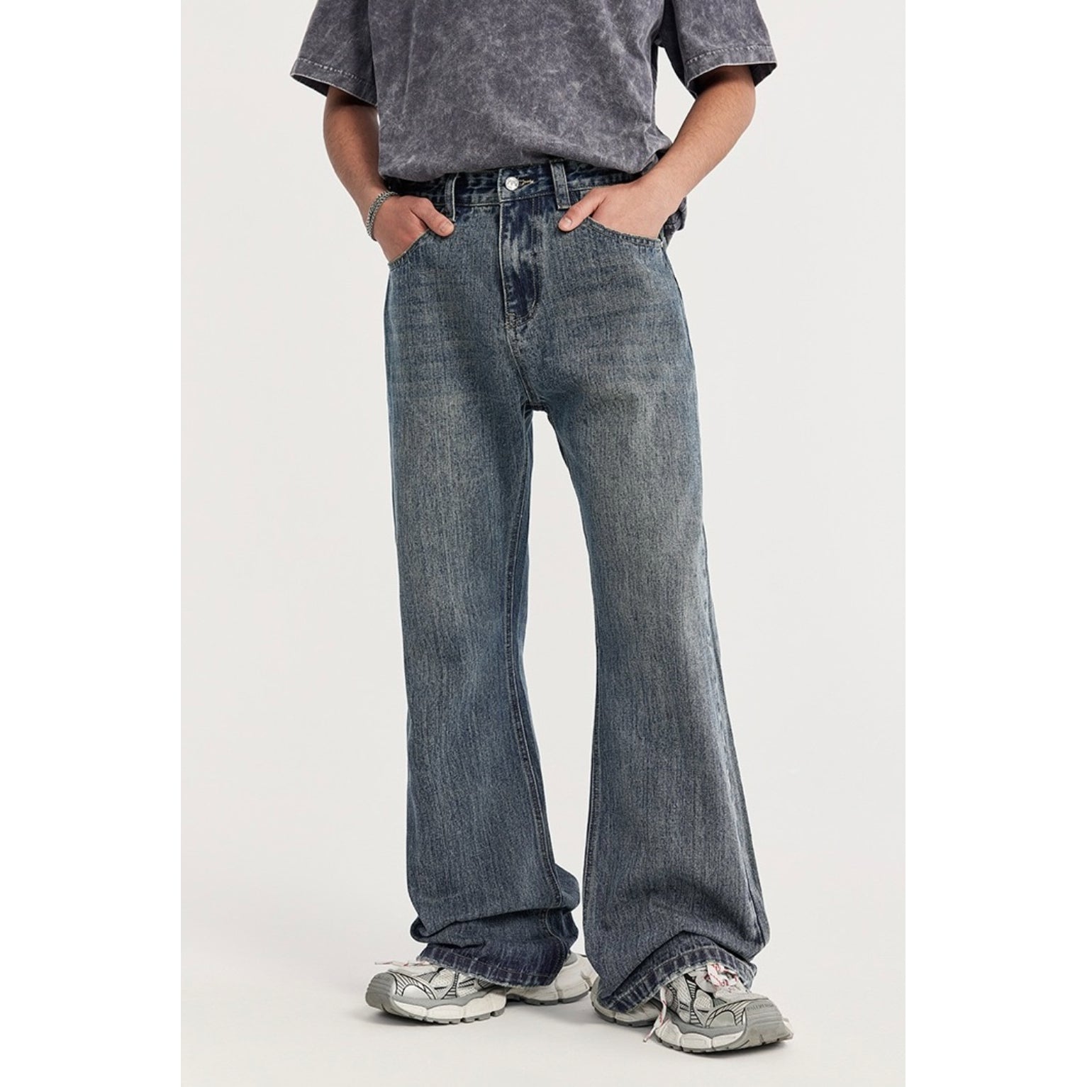Inflation Wide-Fit Straight Flare Washed Jeans